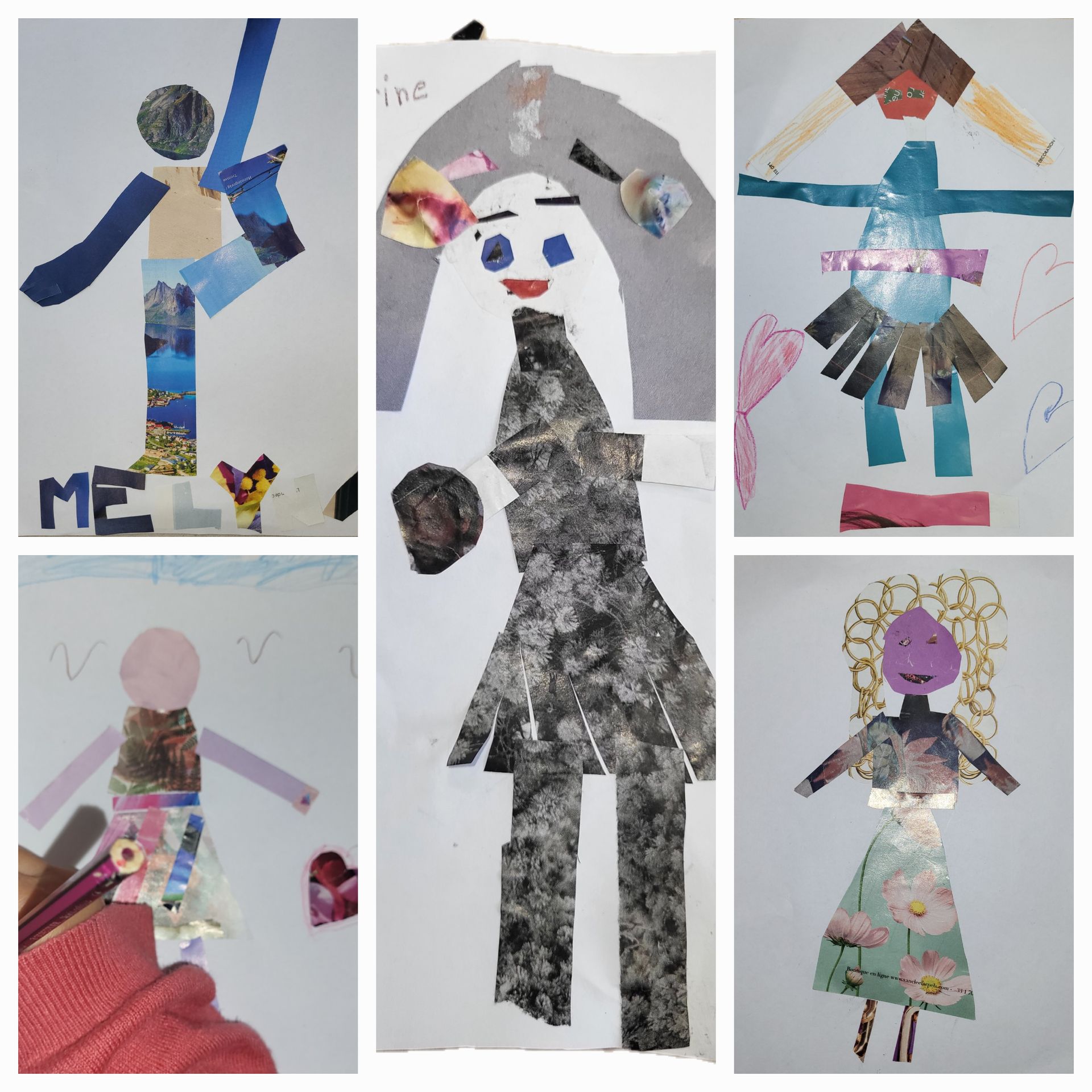 Je donne à chacun quelques consignes, de la colle, des ciseaux et des feuilles de magazine que j'ai sélectionnées pour leur intérêt en veillant à leur "neutralité" vis à vis des enfants. Les créations sont multiples et uniques, comme leurs créateurs et créatrices !