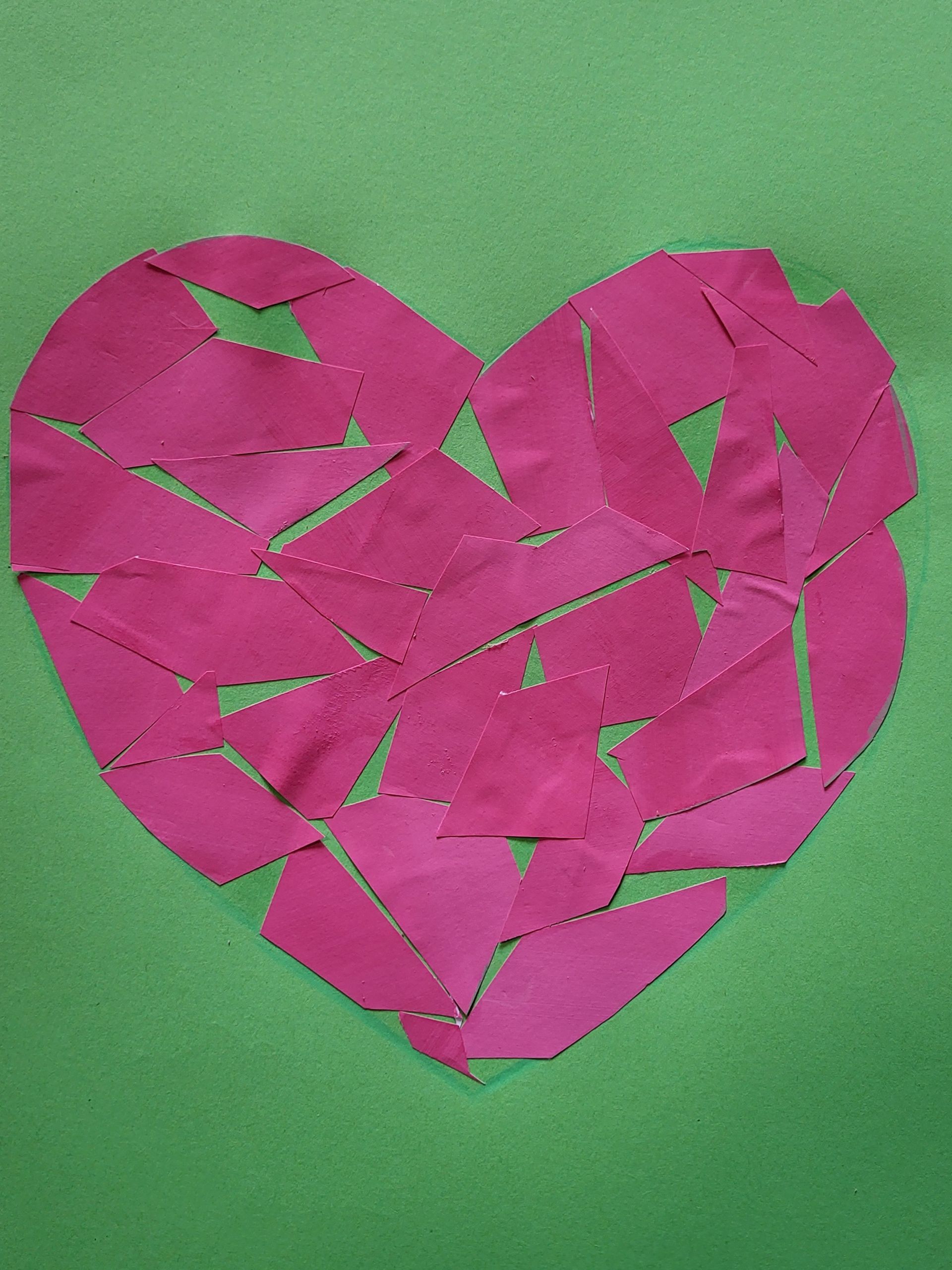 Découper un cœur pour en faire un puzzle et le recoller en laissant apparentes les lignes créées.