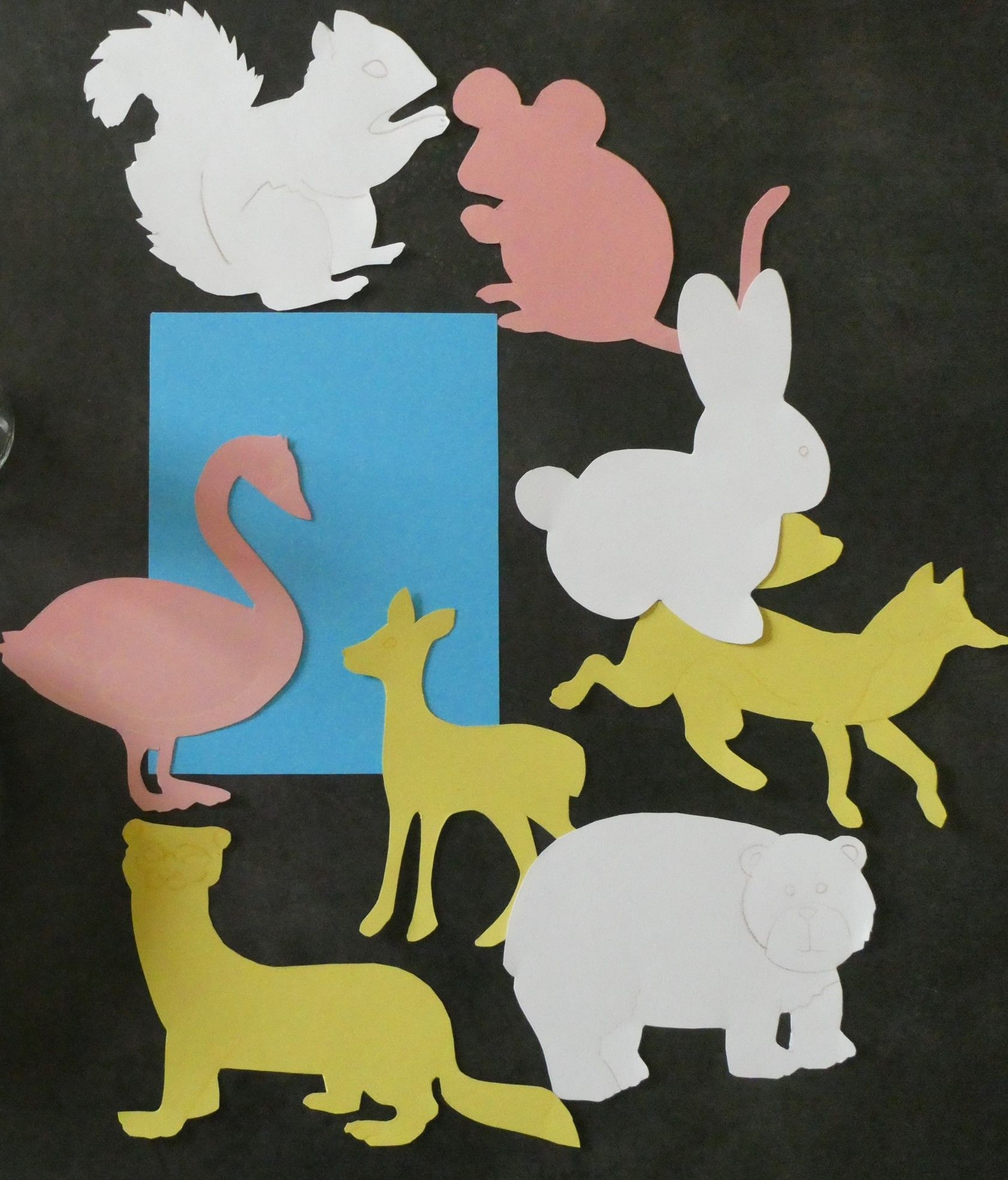 L'animal est choisi parmi une dizaine proposée (renard, écureuil, lapin, cygne, etc), puis peint ainsi que le paysage (papier carte blanc de format A5) avec de la gouache et des cotons tiges ou des pinceaux. L'animal est ensuite collé sur le paysage.