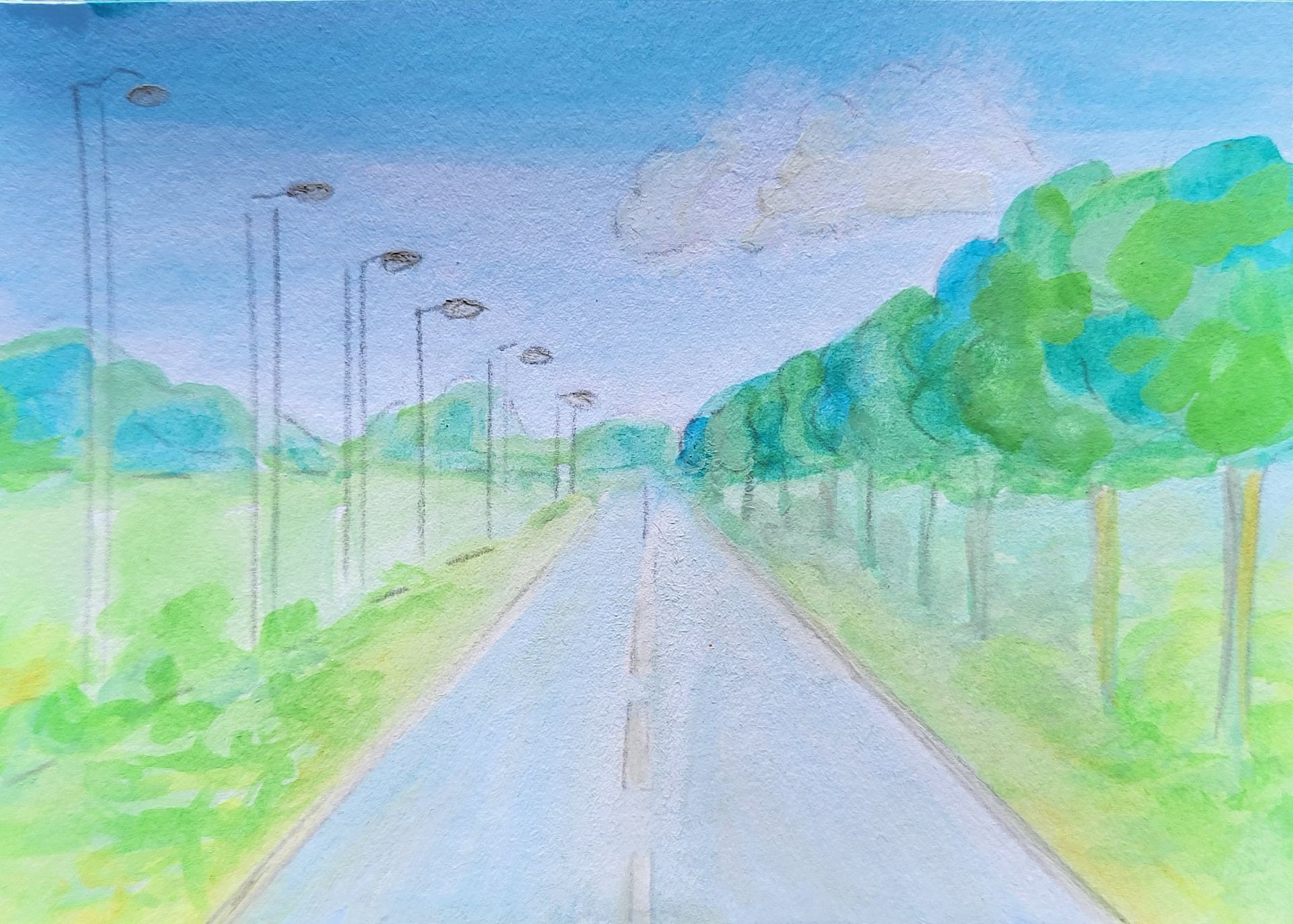 Dessins de paysages aux crayons de couleur
