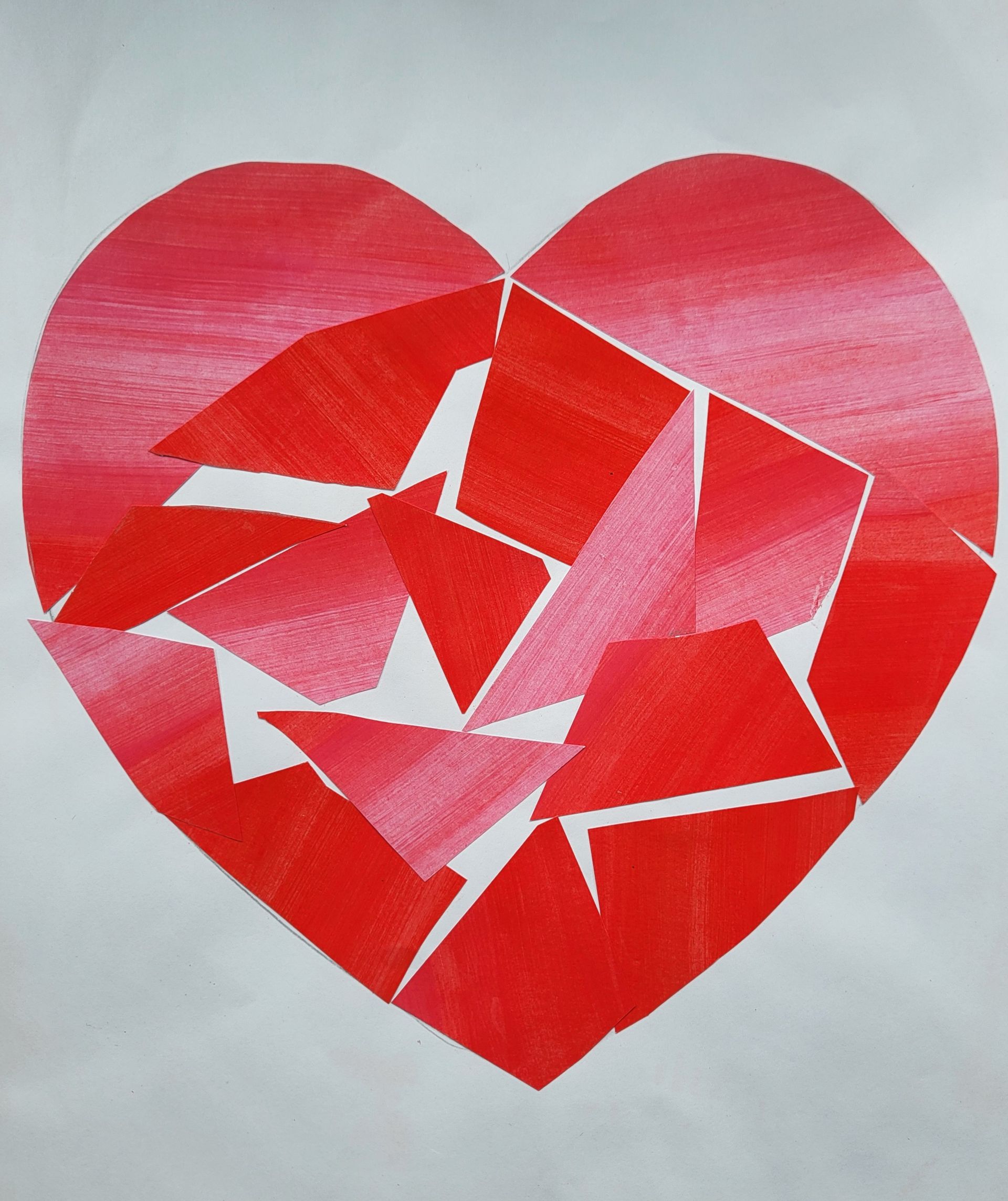 Découper un cœur pour en faire un puzzle et le recoller en laissant apparentes les lignes créées.